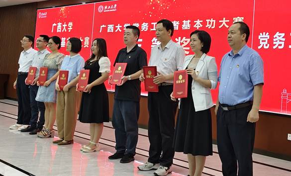 在广西大学6月21日至22日举办的首届广西大学党务工作者基本功大赛中,机关党委宣传部党支部组织员李真荣获专职组织员组三等奖。